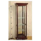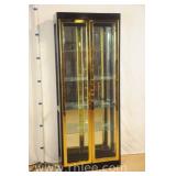 Lighted curio cabinet with mirror back and glass shelves; 55-933 - side entry doors - 25x13x76.5