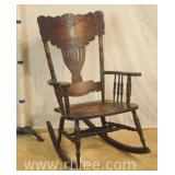 Black decorated spindle back rocking chair; 55-1093 - (finish as-is) - 22x30x41