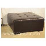 Brown bonded leather ottoman with tufted top; 662-602 - 40x39x19