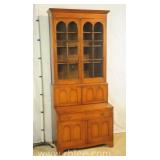 Early pine 2 part secretary; 55-1052 - flip top writing board - (finish as-is; 1 door has been repaired) - 38x21x88
