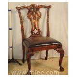 Theodore Alexander carved mahogany Chippendale style chair; 55-1009 - ball in claw feet - leather seat (as-is) - (finish as-is; chip/crack in back) - 24x23.5x39