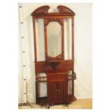 Carved mahogany hall tree with mirror back; 55-1042 - umbrella stands - 1 drawer over 2 doors - 37.5x15x84.5