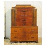 Walnut art deco style chest on chest; 55-lot - on casters - (small chip in veneer) - 39.5x20.5x52