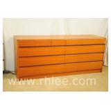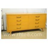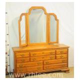 Oak 8 drawer dresser with beveled batwing mirror; 469-125 - (finish as-is) - 65.5x19x32.5 dresser height; 77.5 height with mirror