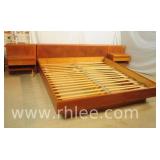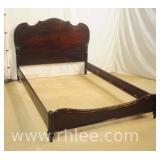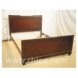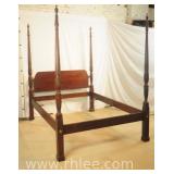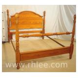 Oak queen size poster bed with metal rails; 469-123 - (finish as-is) - 65x83x51.5; 61x76 inside rails