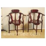 Pair of Oriental style corner arm chairs; 55-1071 - x stretcher bases - 27x23.5x33.5