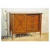 Mid-century walnut credenza with sliding door; 55-1074 - (finish as-is) - 42x20x34.5