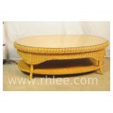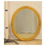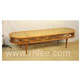 Oval walnut mid-century modern style coffee table with gold mirror top; 55-1078 - 65x18x15.5