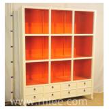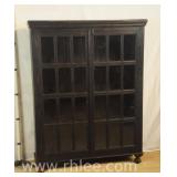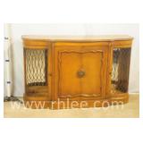 Baker carved bookcase with wire over glass doors; 55-941 - raised panel sides and lower doors - adjustable plate grooved shelves - 50x19x89