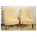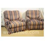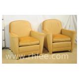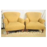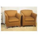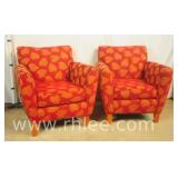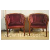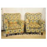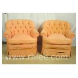 Pair of pink upholstered club chairs with down cushions; 55-800 - (uph. as-is) - 34x32x30.5