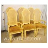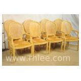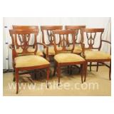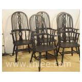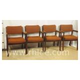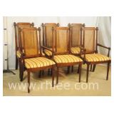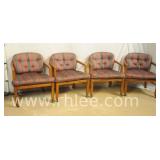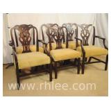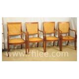 Set of 4 carved mahogany open arm chairs with cane seat and backs; 55-1034 - fish carving on arms - (1 seat as-is) - 22.5x23.5x36.5