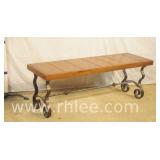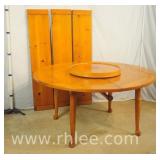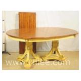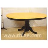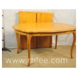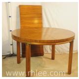 Oak flip top dining table with burl elm top; 55-lot - (finish as-is) - 34x68x28 open; 34x34x29 closed