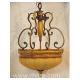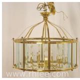 Brass 12 light chandelier with individual pane beveled smoke glass; 644-310 - 23x23x18