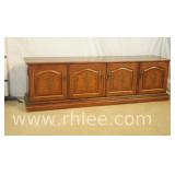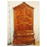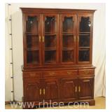 Large 2 part breakfront with angled sides; 55-949 - applied carvings - (bottom center door is locked; small veneer chip on molding) - 83.5x18.5x90