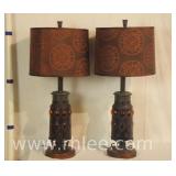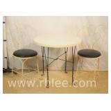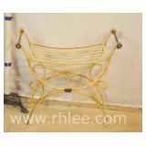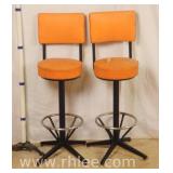 Pair of metal swivel seat bar stools; 74-2172 - (fabric as-is) - 16x17.5x46; 32" seat height