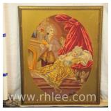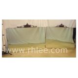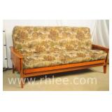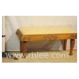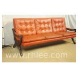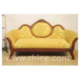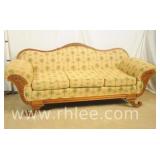 Palm tree upholstered sofa with carved frame; 620-213 - (finish as-is; chewing on toe) - 85x33x34.5