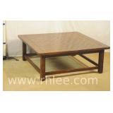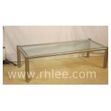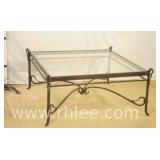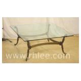 Glass top coffee table with ornate metal base; 55-1057 - 36x36x16.5