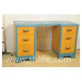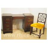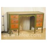 Maple 2 drawer writing desk with stretcher base; 55-942 - (finish as-is) - 40x18x30