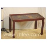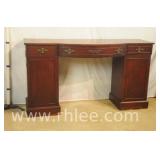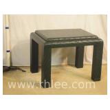 Weiman inlaid mahogany step back end table with leather top; 55-504 - on casters - (finish as-is) - 20x31x26