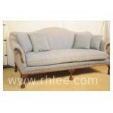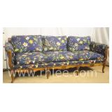 Carved French style sofa with blue floral upholstery; 662-614 - 91x34x32