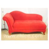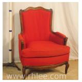 Red French style arm chair; 396-474 - (front apron is broken) - 28x25x37