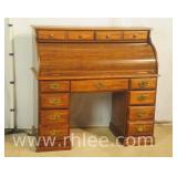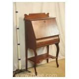 Oak slant front desk; 693-230 - (finish and veneer as-is; backsplash is cracked) - 26.5x14.5x45.5
