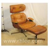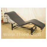 Chrome lounger with black leather cushion and metal stand; 55-1072 - adjustable reclining - 64x18x24