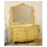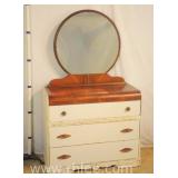 Walnut and white painted 3 drawer dresser with mirror; 693-232 - 42x18x69