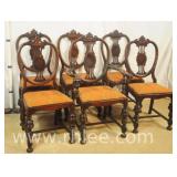 Set of 4 carved oak dining chairs with stretcher bases; 74-1892 - paw feet - 20x21x41