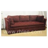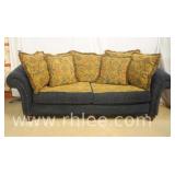 Large blue upholstered sofa with nail head trim; 737-267 - floral pillows - 91x39x28.5