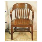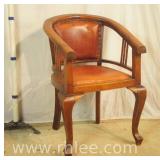 Curved back arm chair with leather seat and back; 55-1030 - 26x24x36.5