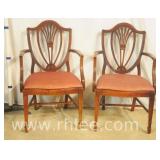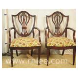 Pair of mahogany shield back open arm chairs; 55-1035 - spade feet - stretcher base - 24x22.5x38.5 |