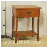 Mahogany single drawer open front end table; 55-1068 - 31.5x20x30