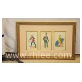 3 framed hand colored French soldier costumes; 274-131 - 1855 - 24x15.5