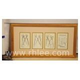 Framed group of 4 engravings of tools; 274-004 - printed in 1860 - est value $425 - 15x28.5