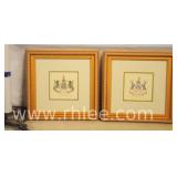 Pair of framed family crests - "Rollo" and "Eglintoun"; 274-074 - 14.5x14.5