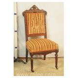 Eastlake style parlor chair with striped upholstery; 278-233 - (missing molding on legs) - 20x22x41.5