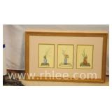 Framed group of three Japanese antique floral prints; 274-055 - 22x13.5