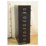 Art Metal black 5 drawer file cabinet; 90-lot - padlock hasp on each drawer - (some dents and dings) - 18x28.5x58.5