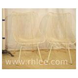 Pair of white metal tub chairs; 172-184 - (paint as-is; some rust) - 19x23.5x28.5