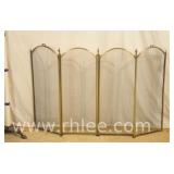 Brass 4 panel folding fire screen; 737-349 - (some light dents in screen) - 52x32.5