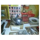 This sales has Christmas Decor, Santa Collector Plates, Brass Binoculars, Candles, Gift Bows, Jewelry, Furniture, antique Tricycle, Antique Wagon, Tools, Knick Knacks, LP's, Old Toys, Comic Books, Old Jars, Antique Pictures, Marbles, Old Windows, Antique Jar Lids, Bakeware, Kitchen Gadgets, Antique Books, Antique Dolls, Antique Light Fixtures, Electric Guitar, Elvis Statue, Old Play Boys, Pots/pans, Red Wing Crocks, Copper Boiler, Depression ware, Carnival ware, Enamel ware, Grocery Cart, Horns, Chairs, and much much More! |