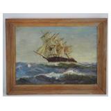 | Painting of a 19th C. 3 Masted Sailing Ship, Signed front and back, dated 1951. |