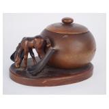 | Wood Burl and Bronze Horse Pipe Tobacco Humidor |