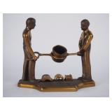 | Cast, then Assembled, Brass Statue, Men Pouring Steel Cauldron |