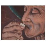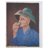 | Gouache Painting, Man Smoking Cigarette |