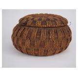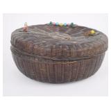 | Woven Reed Basket with Chinese Coins on Lid |