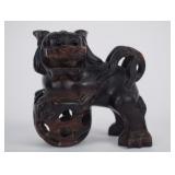 | Chinese Wood Carved Lion or Foo Dog Temple Guardian Figure |