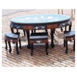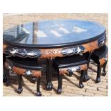 | Carved Coffee Table with Stools. |