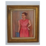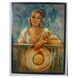 | Painting: Woman with Cigarette, perhaps Audrey Hepburn. Signed G.H. Davis. |